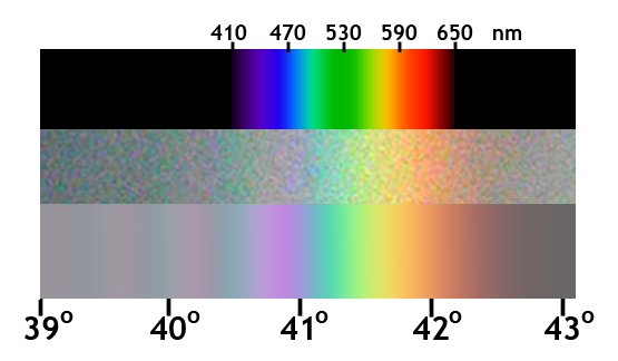 ここで少し質問を変えて、「では、本当に虹は七色か、つまり、虹という現象で観測できる色は七色のみだろうか?」と尋ねたら、ほとんどの人はすんなりハイとは言わなくなってしまう。少なくとも、学校で光と虹について学んだことのある人間なら首を横に振るだろう。